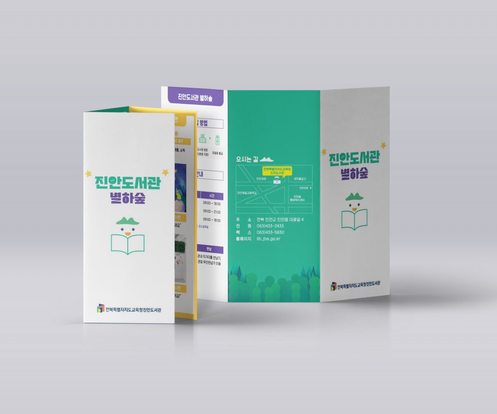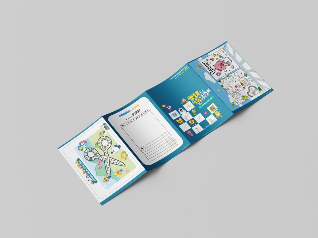 진안가위박물관 ‘뽀로로 in 특별 팝업전시’ 4단 접지 리플렛은 어린이 관람객이 전시를 쉽고 재미있게 이해할 수 있도록 구성한 체험형 안내물입니다. 캐릭터 요소와 컬러풀한 그래픽을 활용해 전시 동선과 콘텐츠를 자연스럽게 안내하며, 아이와 보호자 모두가 활용하기 좋은 참여형 리플렛으로 디자인했습니다.