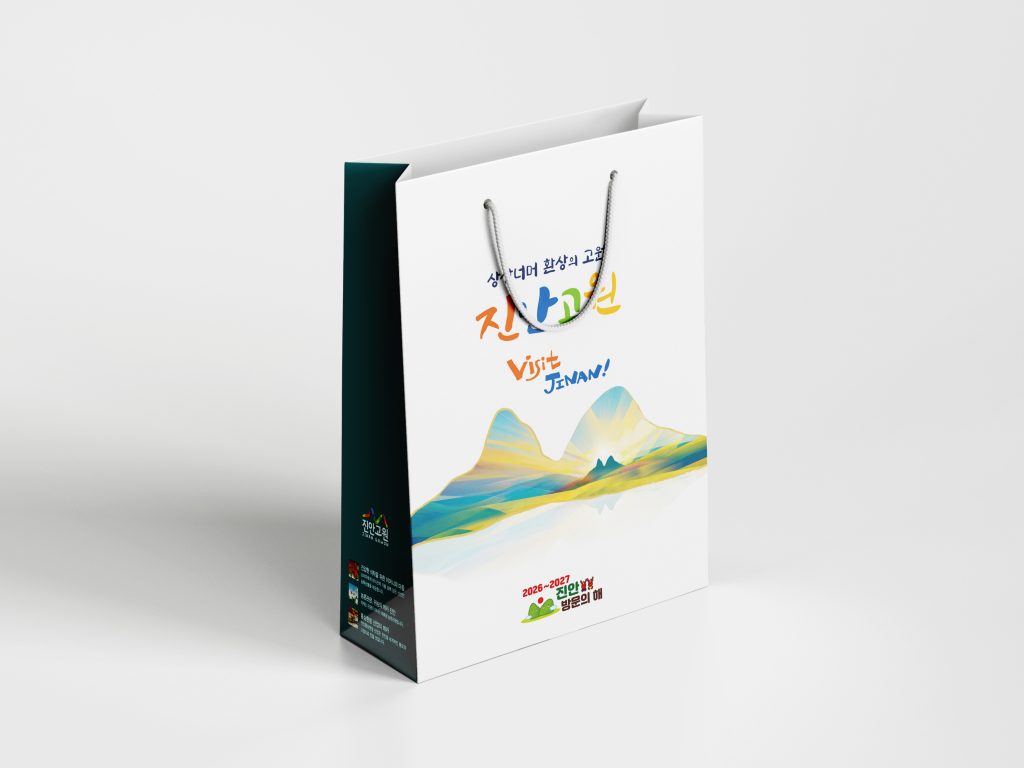 2026~2027 진안 방문의 해 기념 쇼핑백은 진안의 대표 자연경관인 마이산을 일러스트로 담아 진안의 정체성과 여행의 의미를 전합니다.