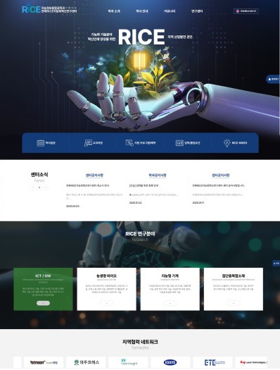 News & lssue 전북RICE지능화혁신연구센터 홈페이지 구축 완료 작성자 sagak 작성일 2025-04-24 14:07 조회 396 홈페이지 https://rice.jbnu.ac.kr 좋아요 0 싫어요 0 인쇄 전체 0 추천순 작성순 최신순 작성자 비밀번호 사진 첨부파일 « 진안군 진안김치보쌈축제 홈패이지 제작 완료 진안고원 운장산 고로쇠축제 홈페이지 제작 완료 » 목록보기 답글쓰기 글수정 글삭제